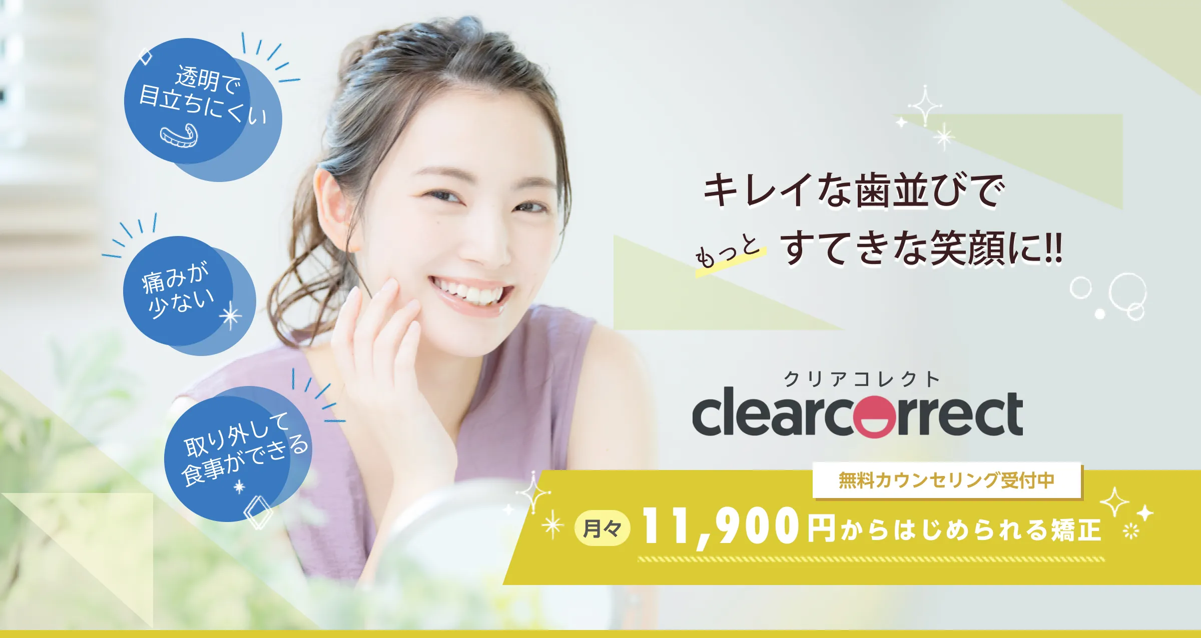 - 骨格に異常があったり(重度の下顎前突や上顎前突など)、歯の移動が大きすぎる場合はクリアコレクトだけでは対応が難しいことがあります。