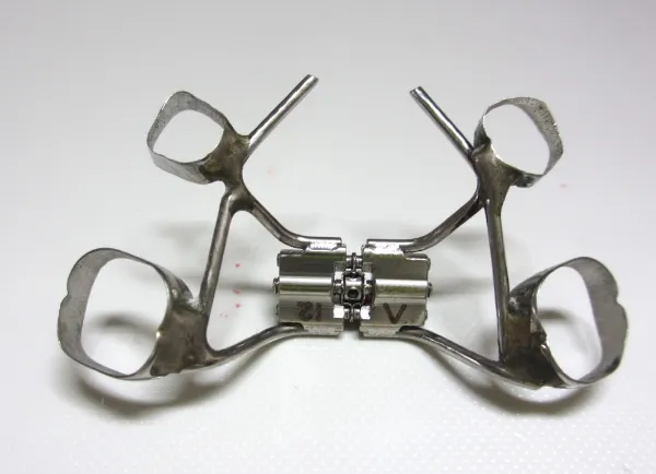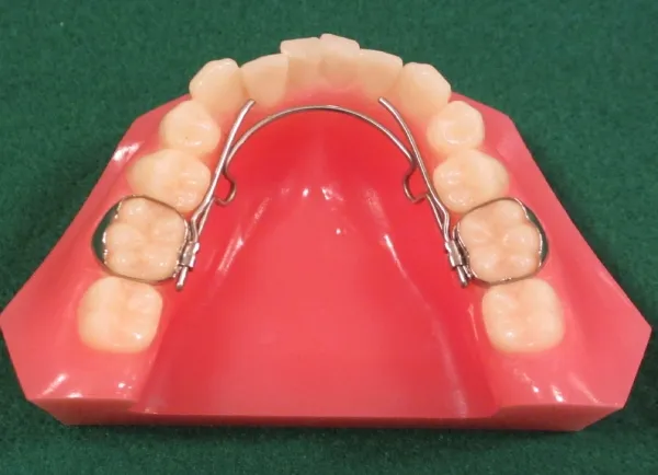 下あごに入れる装置は右のリンガルアーチという装置のみになります。