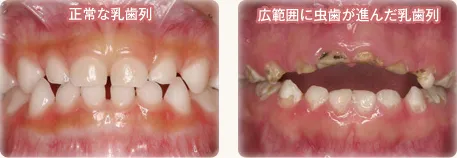 まず永久歯と比べて歯の質が軟らかく虫歯菌に対する抵抗性が低いからです。それに加え、生えたばかりの乳歯は他の歯よりも背が低く食べ物がつまったままになりやすいという点もあげられます。