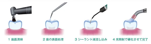 奥歯の溝に薄いプラスチックをつめて虫歯を予防する方法です。